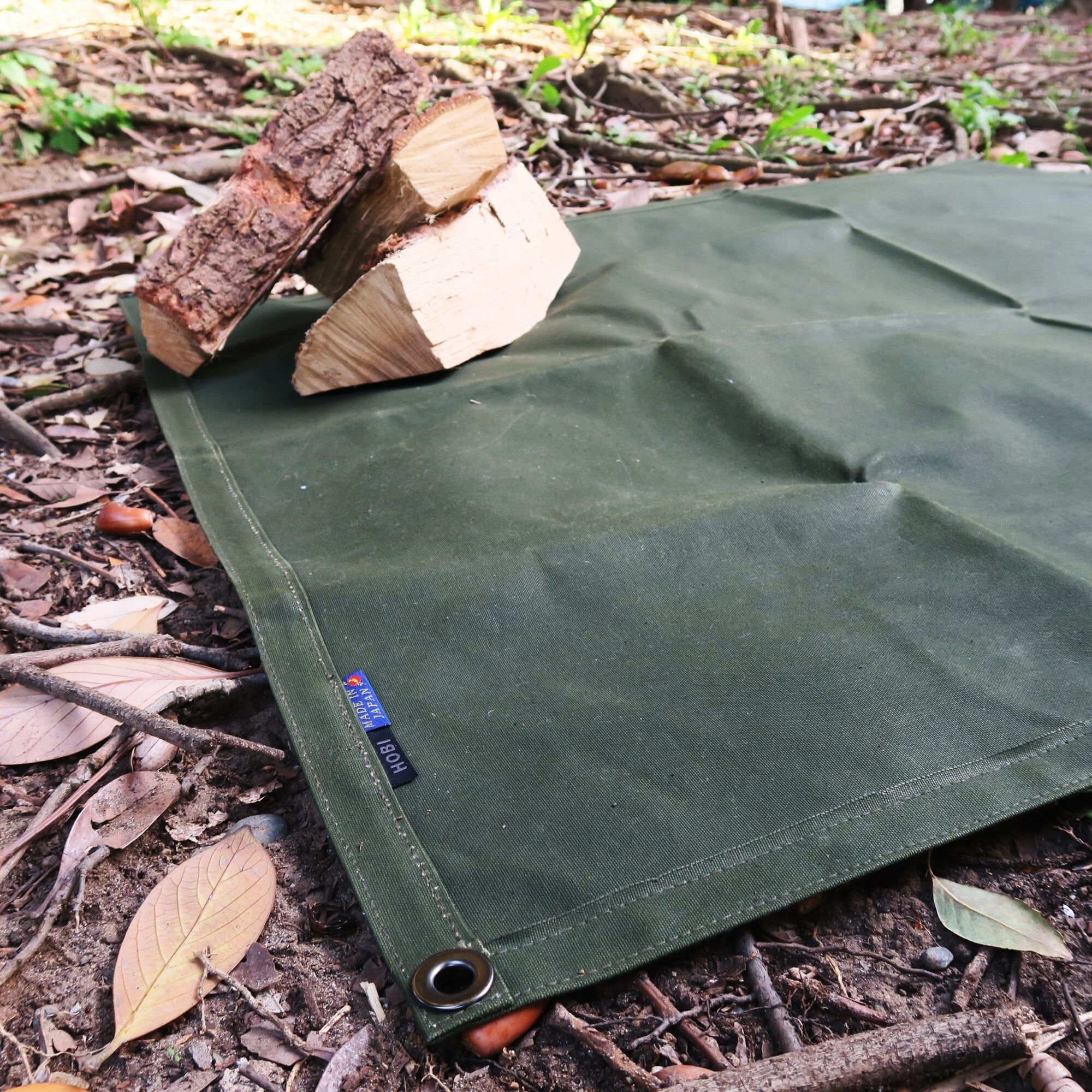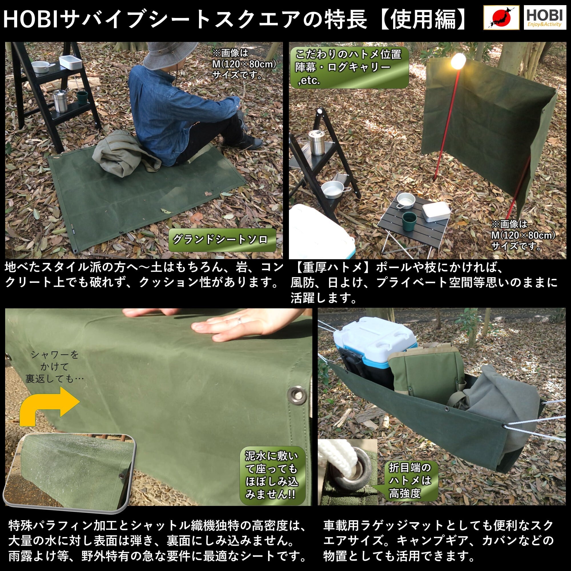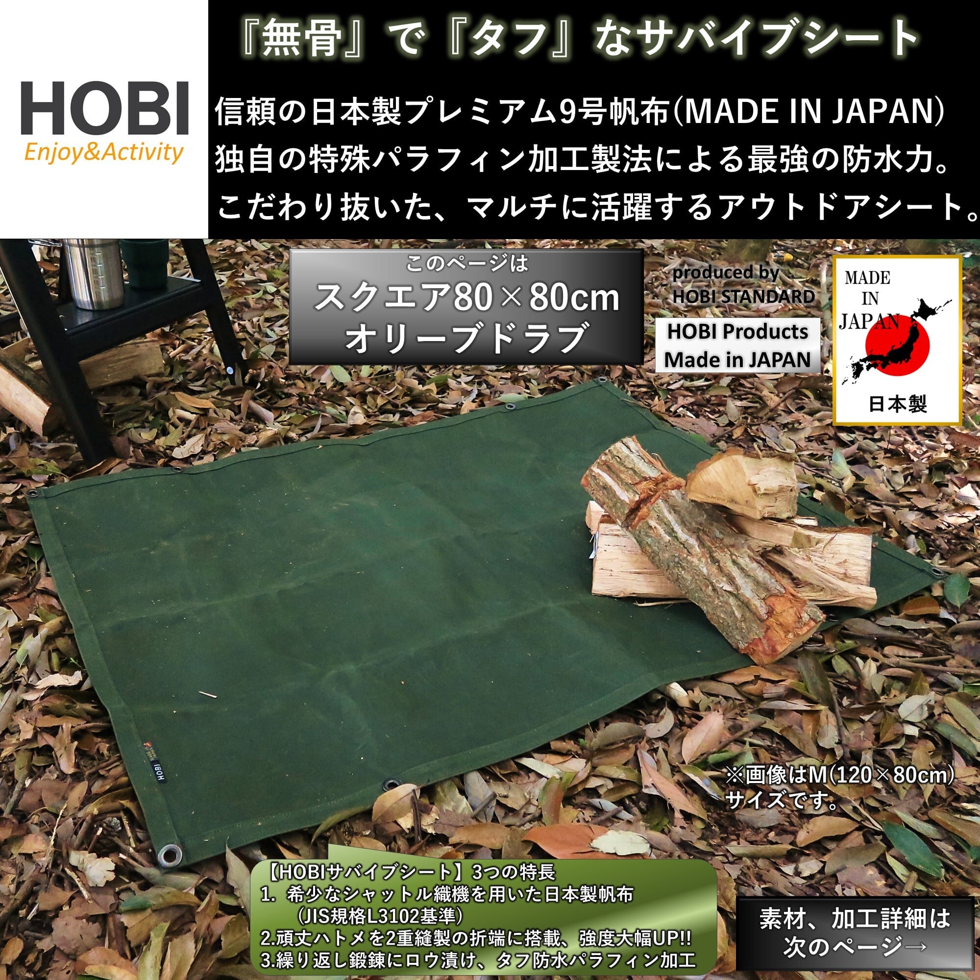 サバイブシート スクエア [HOBI]【日本製】グランドシートソロ プレミアム帆布 強力防水パラフィン加工 [無骨でタフ] 車載 ラゲッジマット 頑丈ハトメ 厚手 マルチ 風避け 焚き火 陣幕 前幕 車載 アウトドア キャンプ レジャー 軍幕 ホビ オリーブドラブ【MADE IN JAPAN】