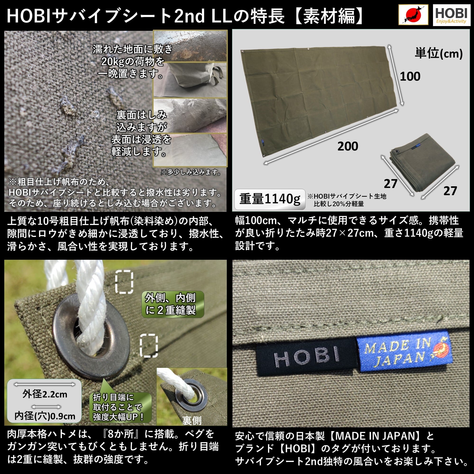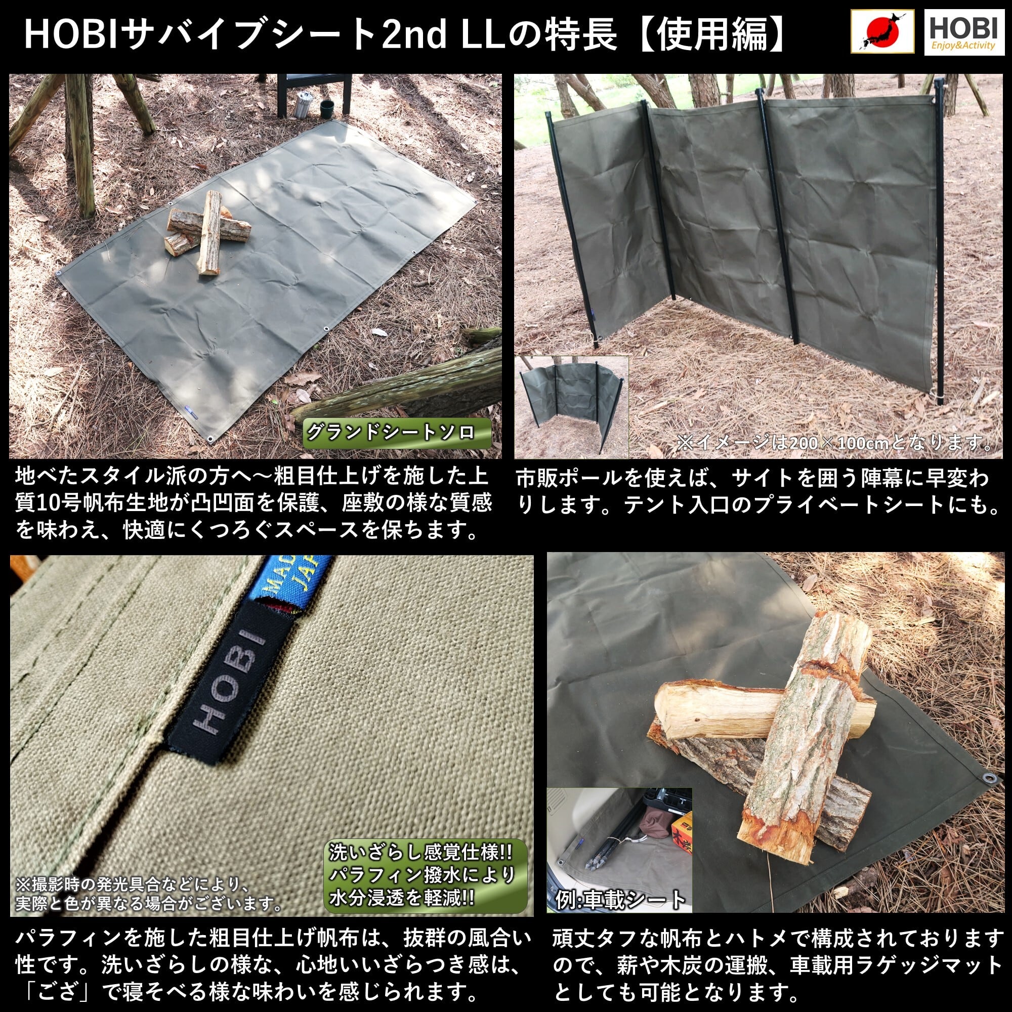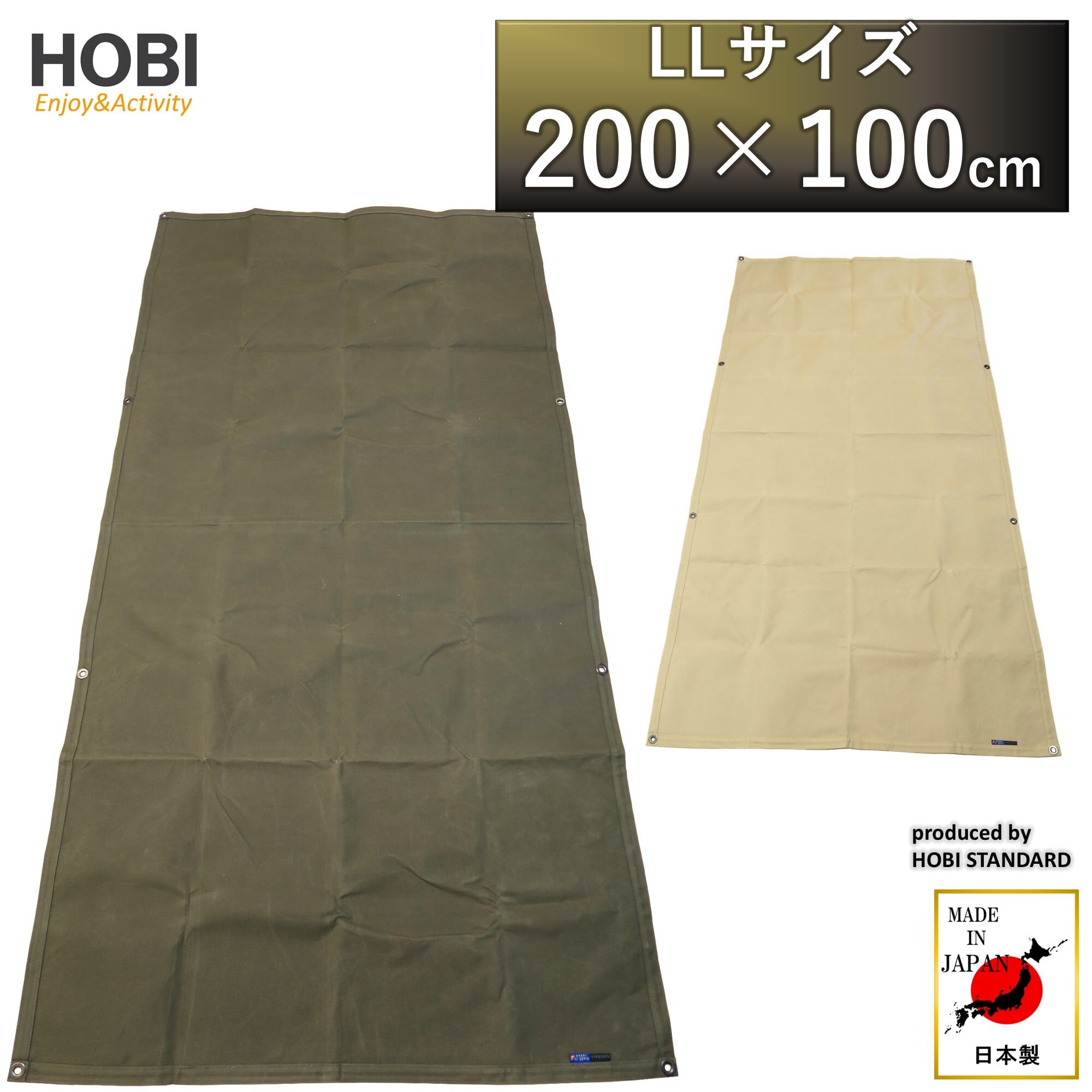 サバイブシート2ndLL(200×100cm) [HOBI]【日本製】グランドシート 上質高級帆布(粗目風情仕上げ) 撥水パラフィン加工 [無骨でタフ] 厚手 マルチ 車載 ラゲッジマット 頑丈ハトメ 陣幕 キャンプ 焚火 風避け アウトドア レジャー マット 軍幕 ブラックカーキ/サンド [MADE IN JAPAN]