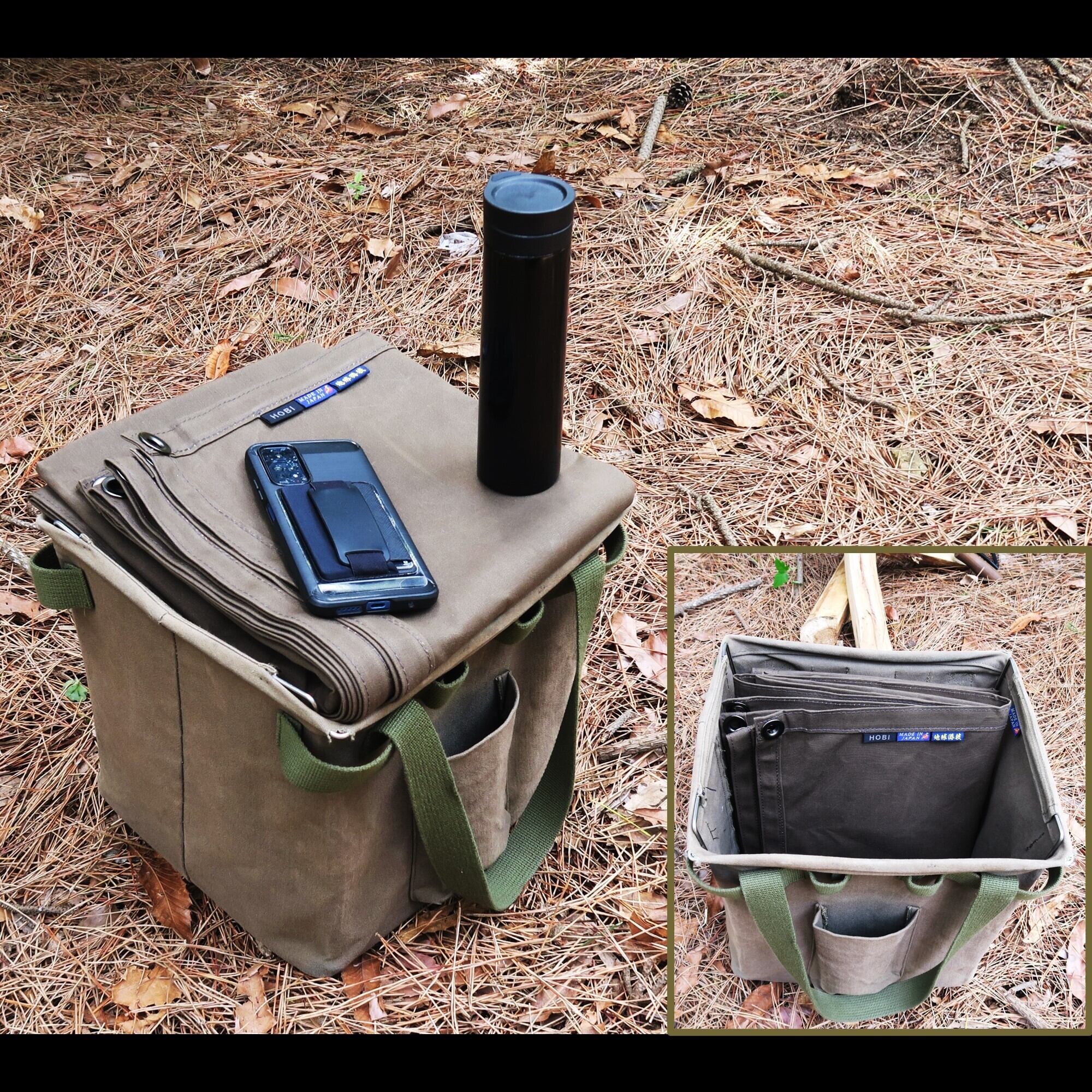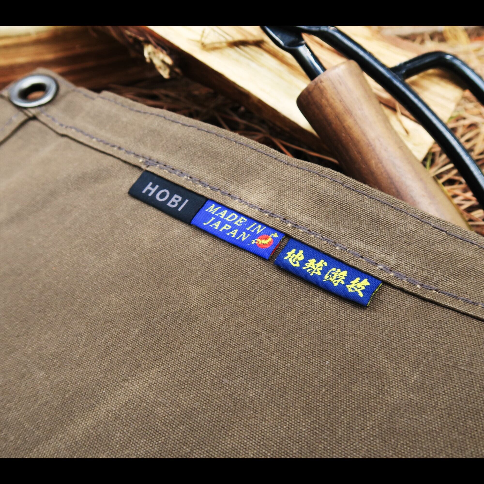 ⛺特長①日本製【MADE IN JAPAN】●JIS規格L3102基準に基づいて国内で生地生産。上質アース帆布と独自パラフィン加工された『地守』は、高い品質を保っております。JIS規格L3102は廃止となりましたが、HOBI帆布は高性能を維持すべく、糸構成、密度、重さ等が厳格な当基準を用いて生産しております。江戸時代より使用されている頑丈で分厚くしっかりした帆布は軍用テント等に使われ、非常に破けにくい綿100%の環境にやさしい素材です。超軽量ながら無骨にガシガシ使用出来、薪やテントギアなど包んで持ち上げてもびくともしません。特殊なパラフィン浸け込み加工により高い撥水性を実現し、使い込む程にビンテージ風な雰囲気を表現します。雪中キャンプ、野営など様々なシーン、ロケーションで活躍します。